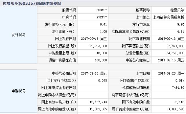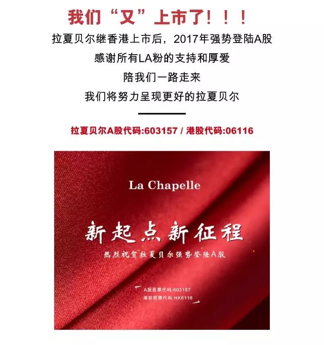 9月25日,上海拉夏贝尔服饰股份有限公司(股票代码:603157)在上海证券交易所主板上市交易。据公告显示,此次共发行5477万A股,发行价为8.41元,共募集资金4.6亿元。开盘价即涨44%。