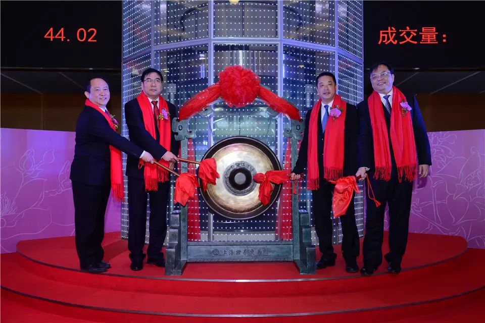 ▷图为谢秉坤董事长与上海证券交易所领导签订《上市协议书》
