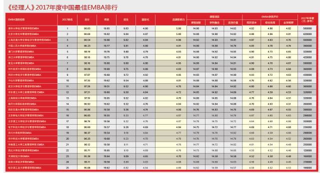 历时12年,《经理人》见证了中国EMBA教育从起步、发展到繁荣的全过程。在此期间,《经理人》每隔2年通过多项维度、指标,客观的呈现了中国各商学院EMBA项目的基本情况,所发布榜单受到社会大众关注与认可。2017年是第六次进行榜单发布。