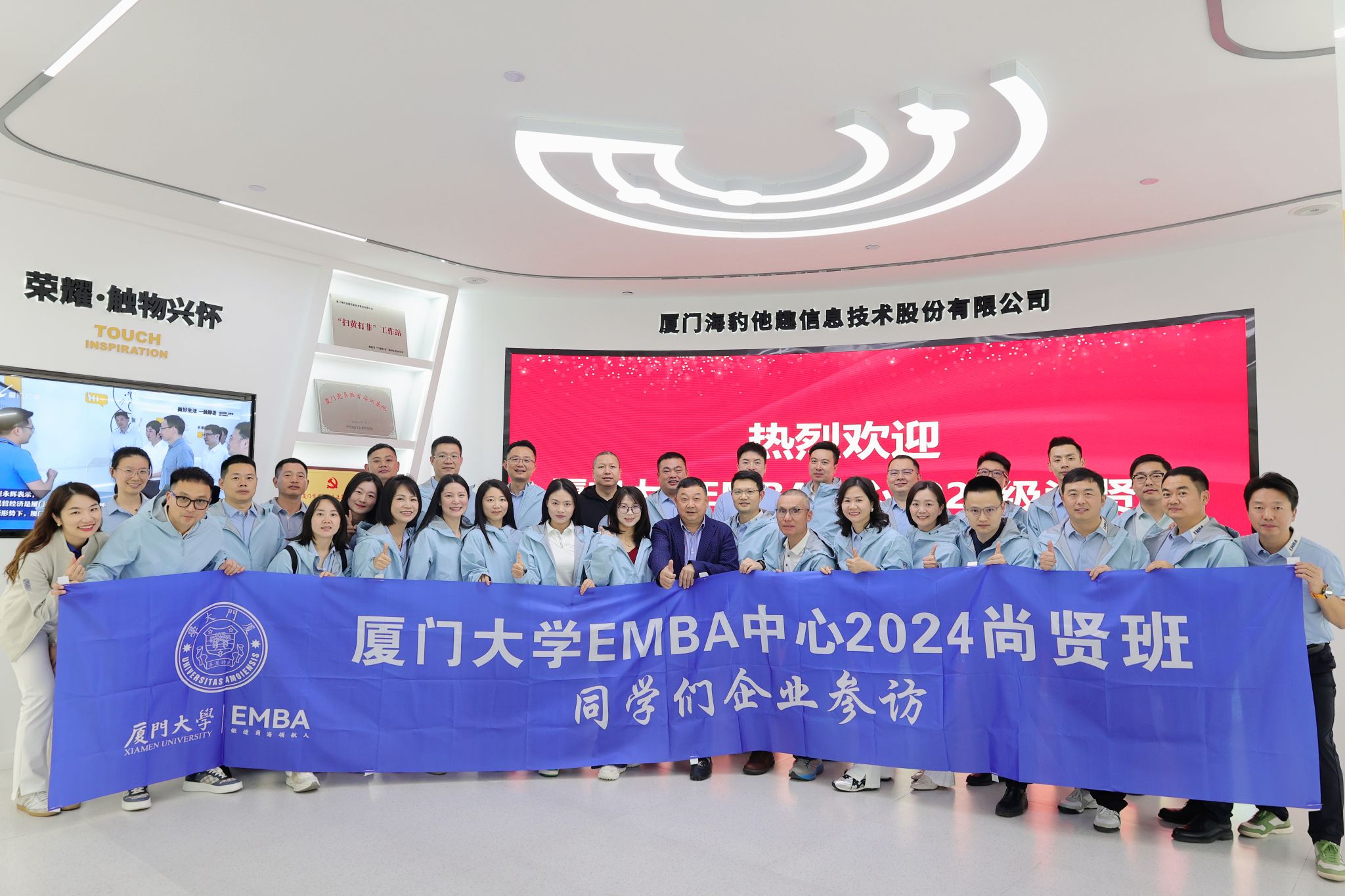 同一天,厦大EMBA2024级尚贤班走进校友企业海豹信息,同学们在公司总经理黄俊杰同学带领下,深入了解海豹的垂直社交和泛娱乐平台搭建、双轮驱动与线上线下结合、算法匹配和全场景生态闭环等商业模式,重点学习交流人工智能在他趣的应用实践。