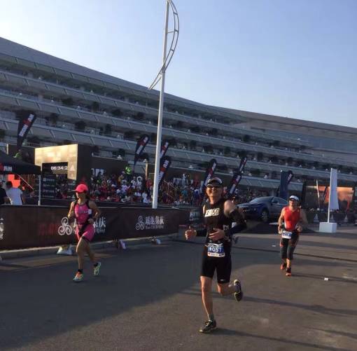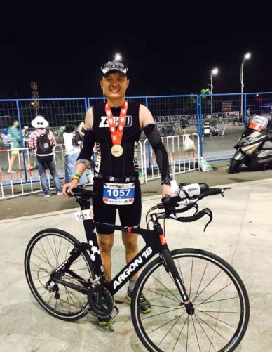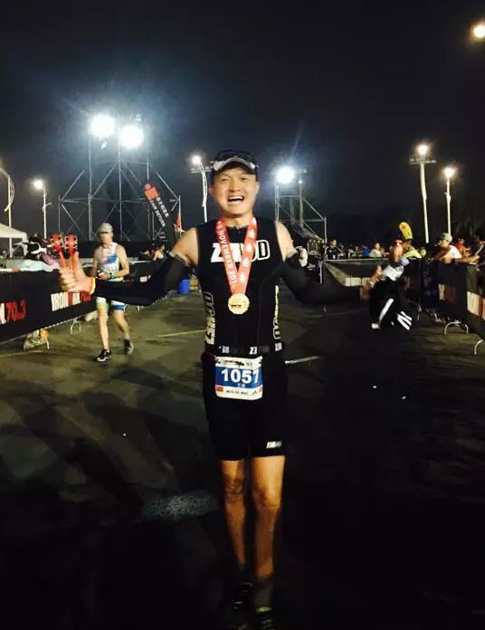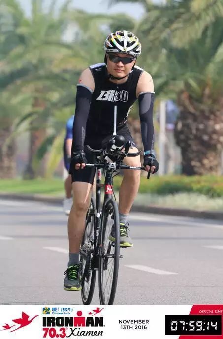 2016年11月13日18:15,冲过厦门IRONMAN70.3(世界铁人三项)赛事终点线,手表计时定格在7小时59分14秒。