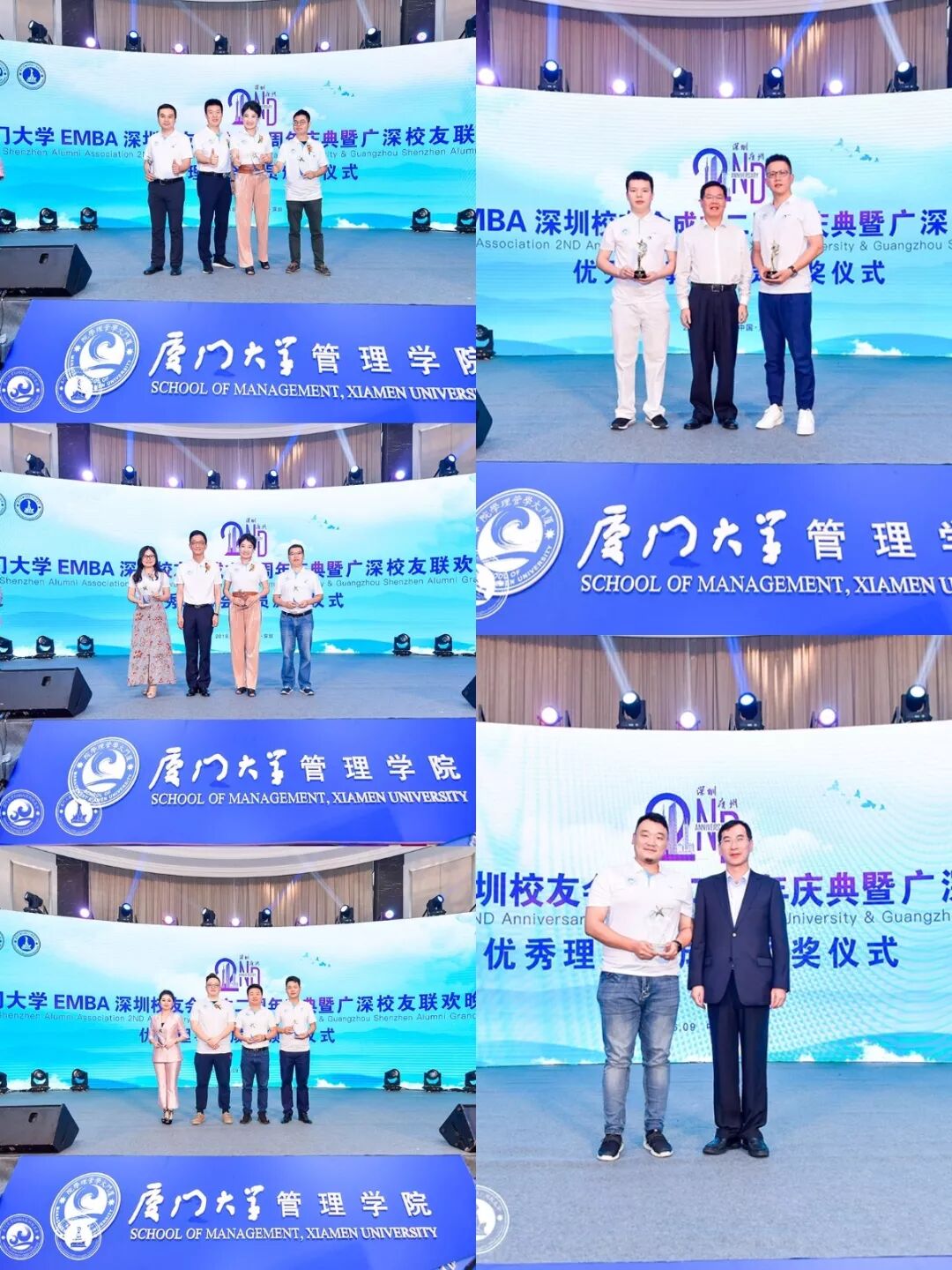 在校友会这个大家庭中,有这样一群人:他们从校友会筹备成立之初就默默奉献、热心参与、积极建设,从校友会最初的筹备成立,到过去一年的校友会工作,都离不开他们的参与和付出。秘书处特设“2017年度厦门大学EMBA深圳校友会优秀理事会成员”奖项,感谢和表彰理事会成员的杰出代表。常务副会长兼秘书长张优、监事长张志聪、会长郑耀南、曾国斌秘书长、朱崇实教授为各位获奖者颁发了奖牌。