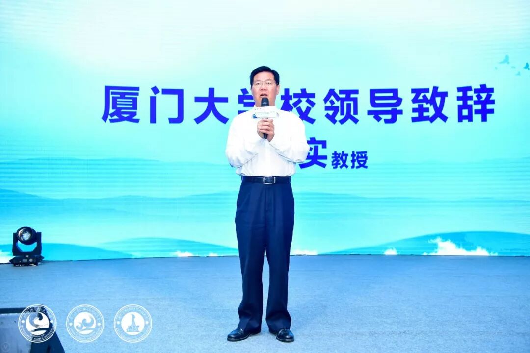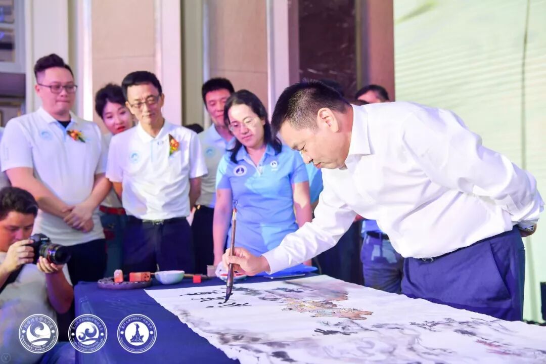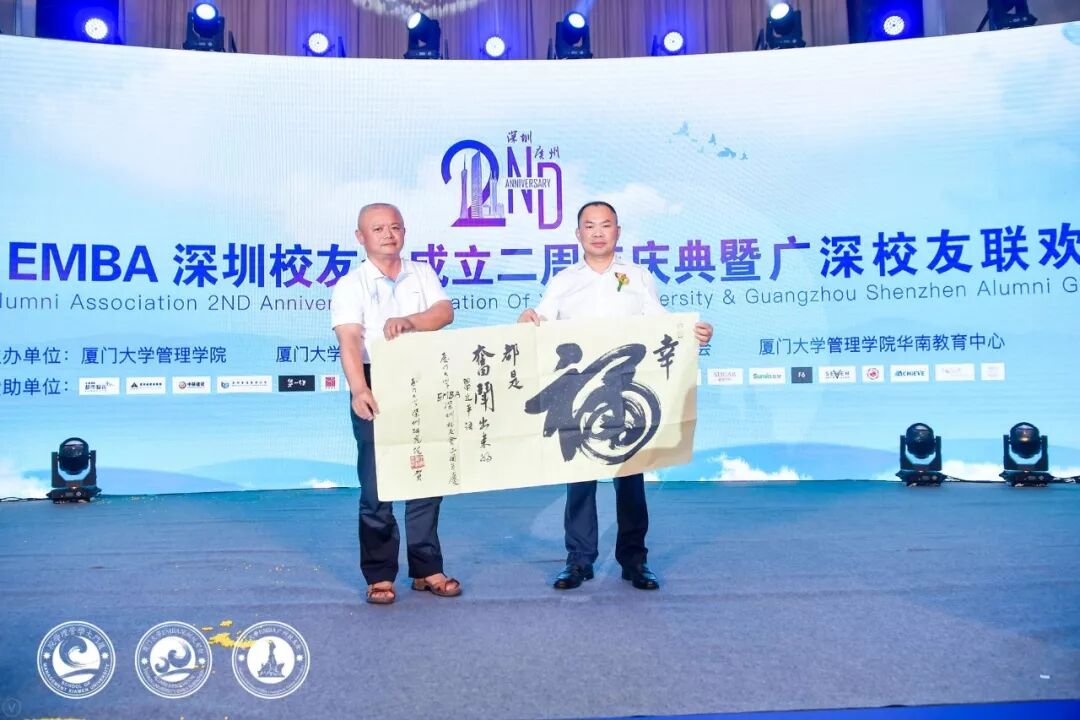 厦门大学深圳研究院副院长郑庆喜赠送题字,深圳校友会荣誉会长庄重代表接收。