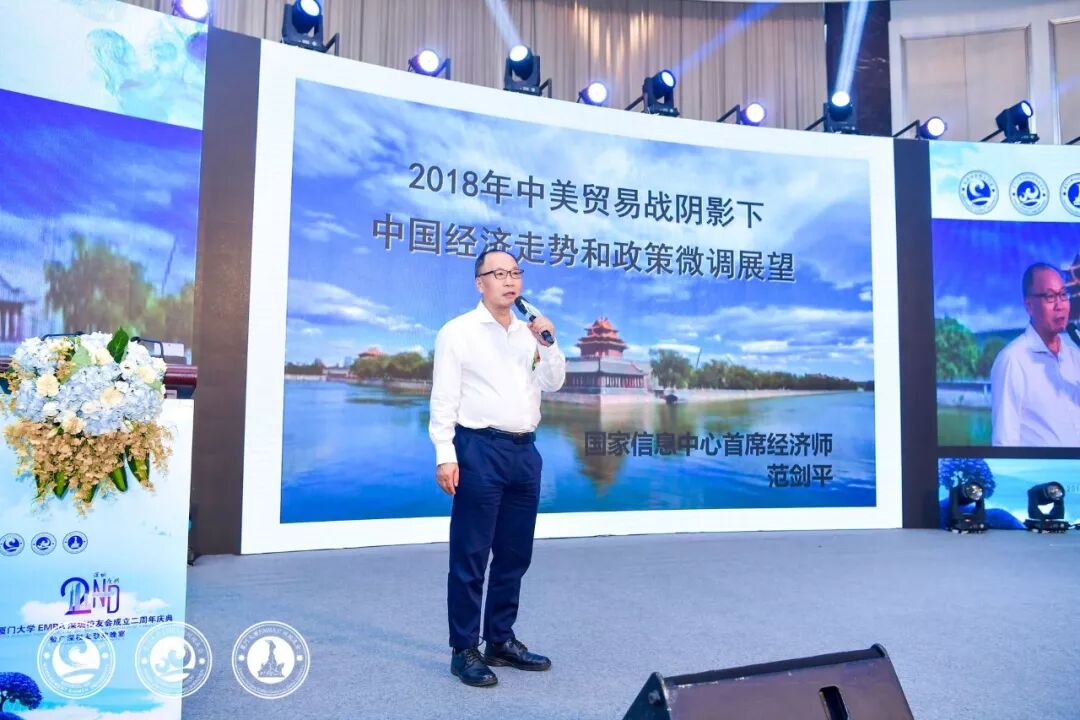 范剑平教授进行主题为2018年中美贸易战阴影下中国经济走势和政策微调展望的分享。