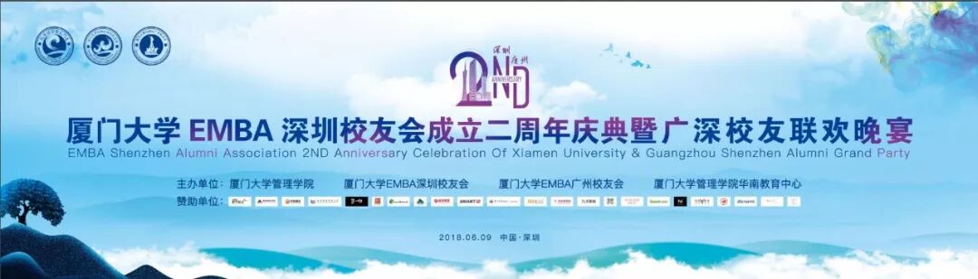 2018年6月9日,厦门大学EMBA深圳校友会成立二周年庆典暨广深校友联欢晚宴如期在深圳东海朗廷酒店三楼大宴会厅举行。学校领导、学院领导、广深校友合计350余人出席此次活动。