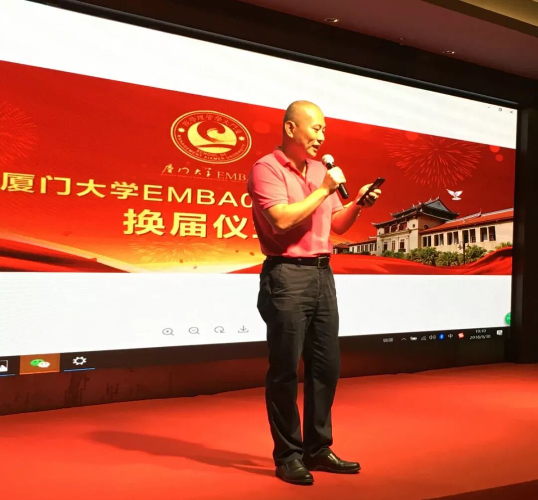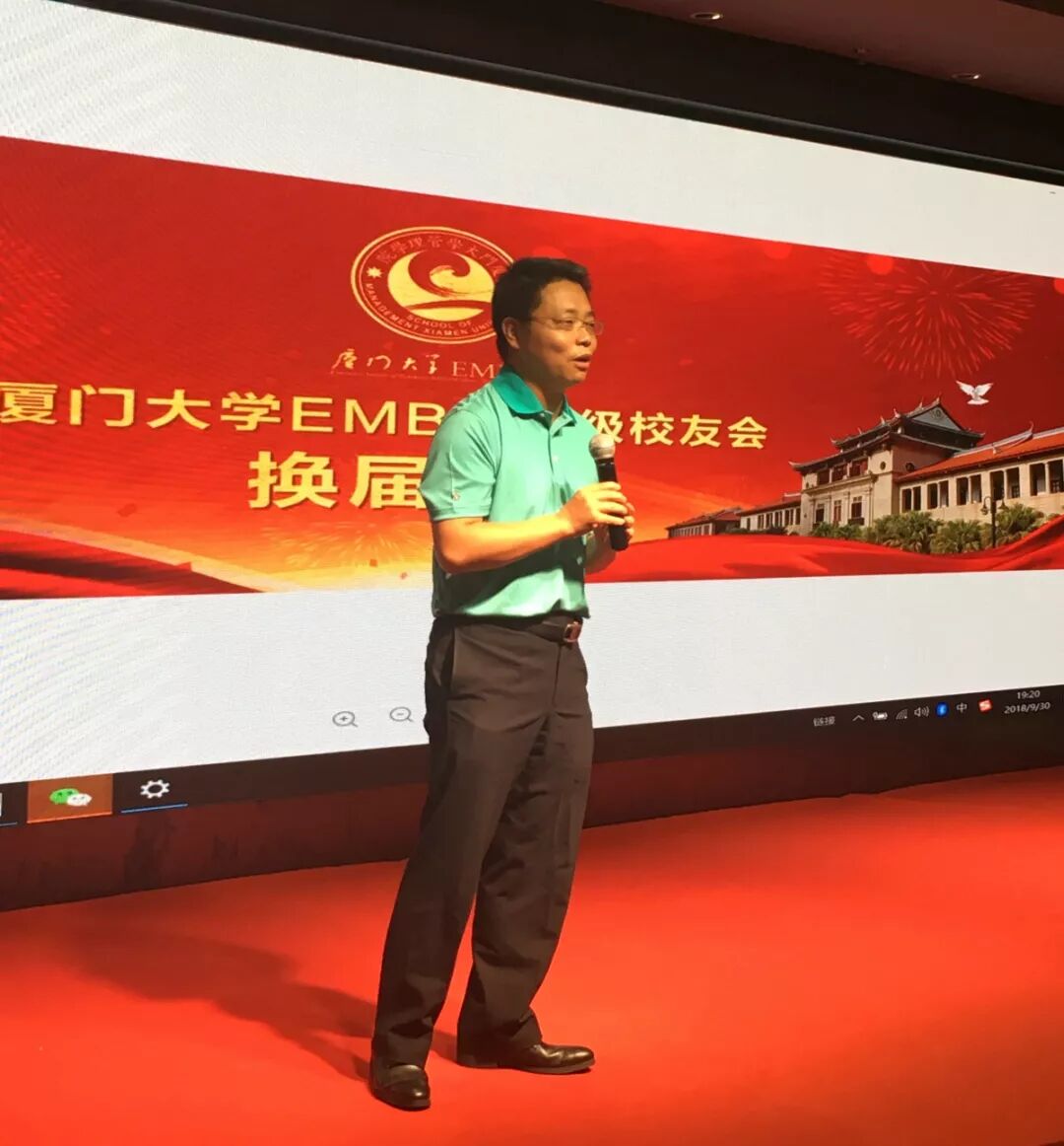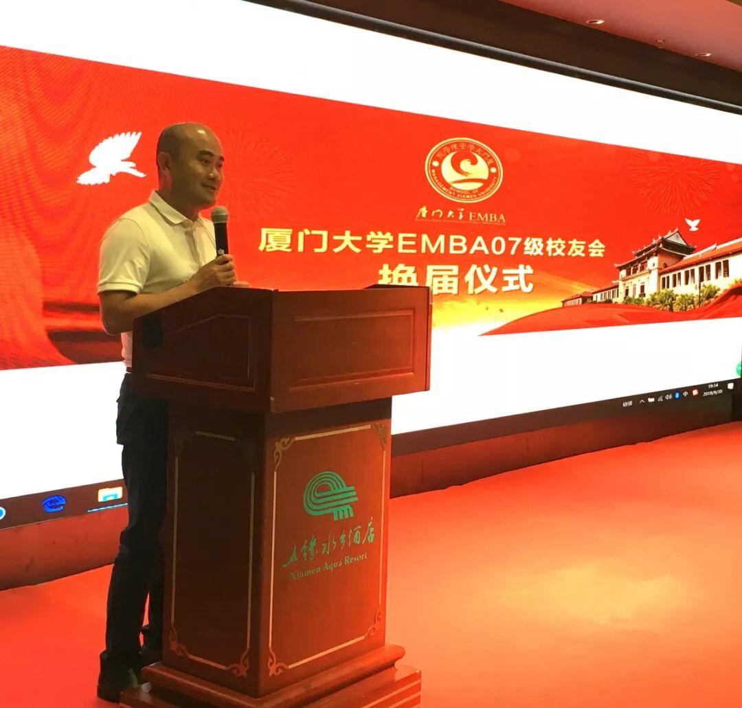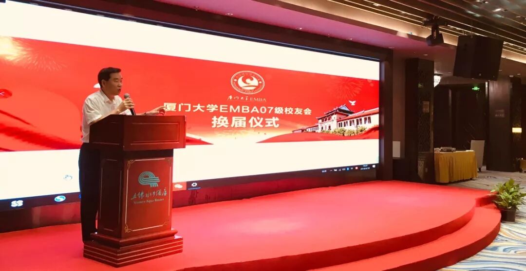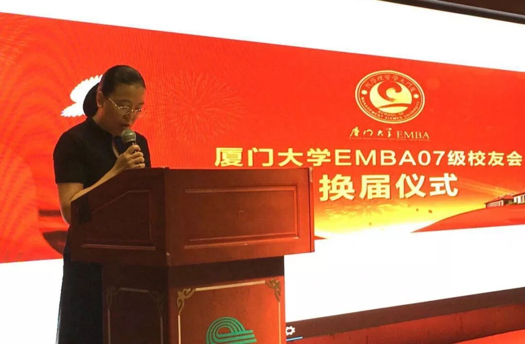 最后,厦门大学管理学院副院长于李胜教授则代表校方对厦门大学EMBA联合会2007级闽台校友分会换届成功举办表示祝贺,也期望校友分会秉承服务校友,回报母校,回馈社会的宗旨和己任,不断成长、进步。