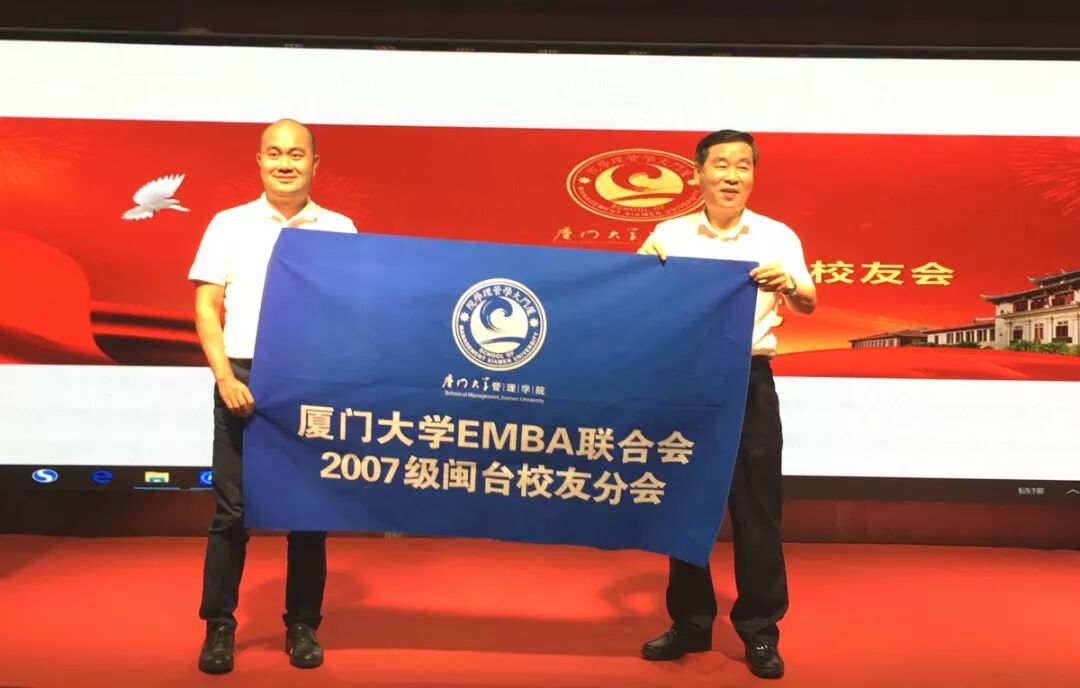新任秘书长黄晓平宣读了修订后的《厦门大学EMBA联合会2007级闽台校友分会章程》。新老会长进行了会旗交接,此举象征着责任的传承。