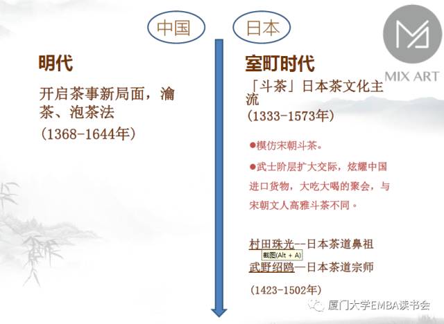 读书会每年都会有茶的活动,今天的茶会品谈是由读书会理事蔡雨衫主持,主讲嘉宾是中华文人茶道资深讲师、国家二级评茶师、致力于中国茶文化传承与发展的曹美华老师。曹老师两年前给我们介绍了中国的6大茶类,今天重点是中日茶文化的差异。曹老师用了简单明了的方式做比较,风趣地说到中国引领了流行,一般要300年以后才会在日本流行。