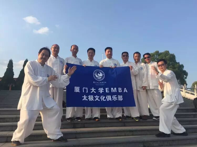 厦门大学EMBA太极文化俱乐部成立两年来,一直坚持着每周六集合跟着师傅学拳、练拳,学员们的身心都得到很好的修炼,已形成了一批太极拳忠实的粉丝。为丰富俱乐部活动,让同学们更好地一起修身养性,一起更广泛地去了解博深的中国传统文化和太极文化,除练拳外,俱乐部还组织开展了一系列活动,包括养生讲座、国学讲座、参加厦门国际太极比赛、参加校友们的各种活动表演等,近期也将陆续安排到陈家沟、金门等地交流学习。