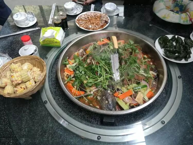 参观军工厂遗址,在食堂吃大锅饭。