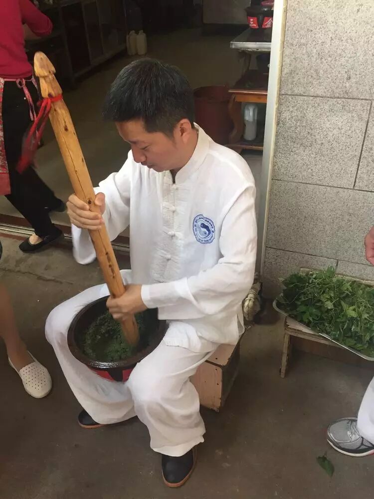 高会长亲自为同学们擂茶。