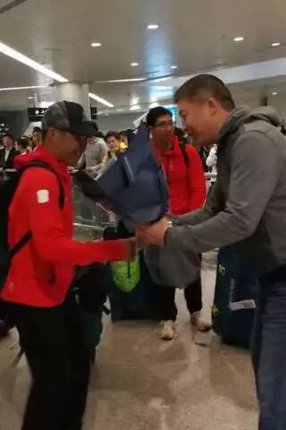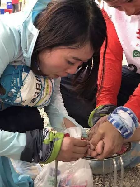 冲锋队的王秉旭戈每天早早冲到终点,还为A队和后续到达的B队队员做拉伸。