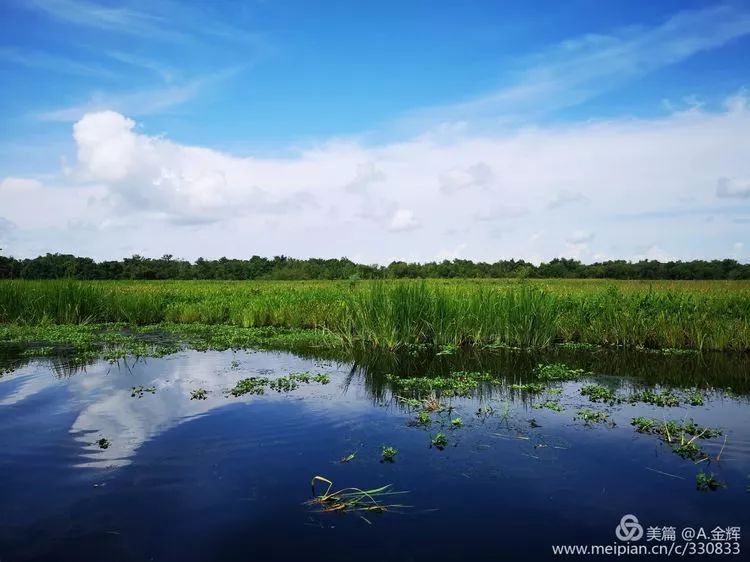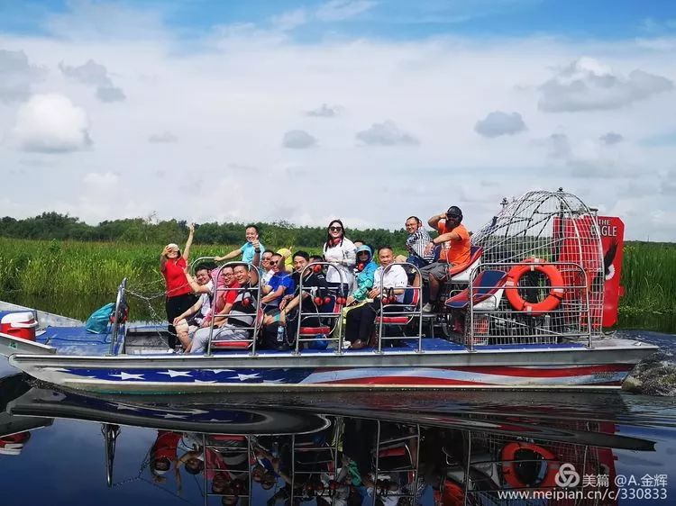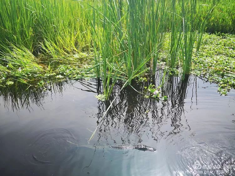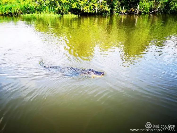 一架架草上飞带着我们飞驰在沼泽湖里面,升起一片片的水花,我们去寻找鳄鱼,蓝天白云下面,茫茫无际的沼泽地,绿油油的水草,巨大轰鸣声的马达使你不自觉的带上耳罩,不能交流,同学们不知道在想什么,从眼神里可以看出那向往神秘的内心深处抑制不住激动的心情,欢声笑语,尖叫声中来一次和鳄鱼的亲密接触。